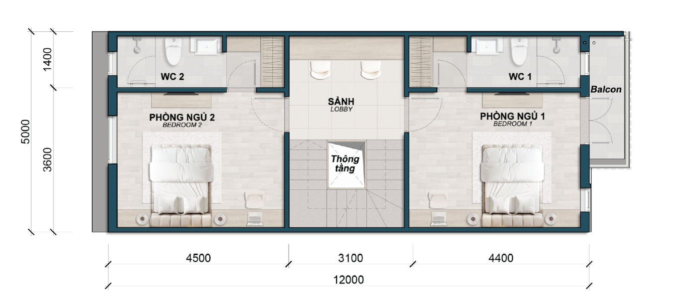 (* Bố trí nội thất chỉ mang tính tham khảo, thông tin chính thức phải căn cứ theo hợp đồng)